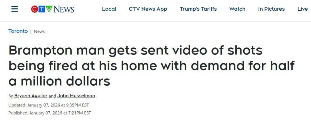 上周,加拿大安大略省宾顿市发生一起令人震惊的敲诈勒索案。一名男子竟收到一段匪徒朝自家住宅开枪射击的视频,并索要50万加元赎金,否则将面临全家被灭门。