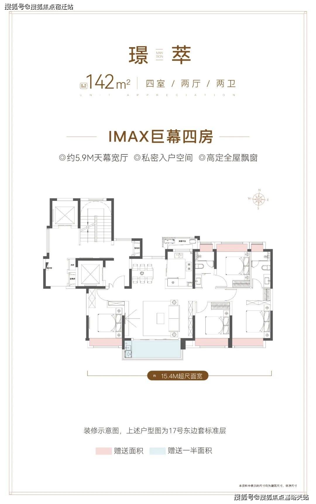 线房产品,大横厅的设计,四开间朝南+大横厅,约15.4米的南向面宽堪比别墅。