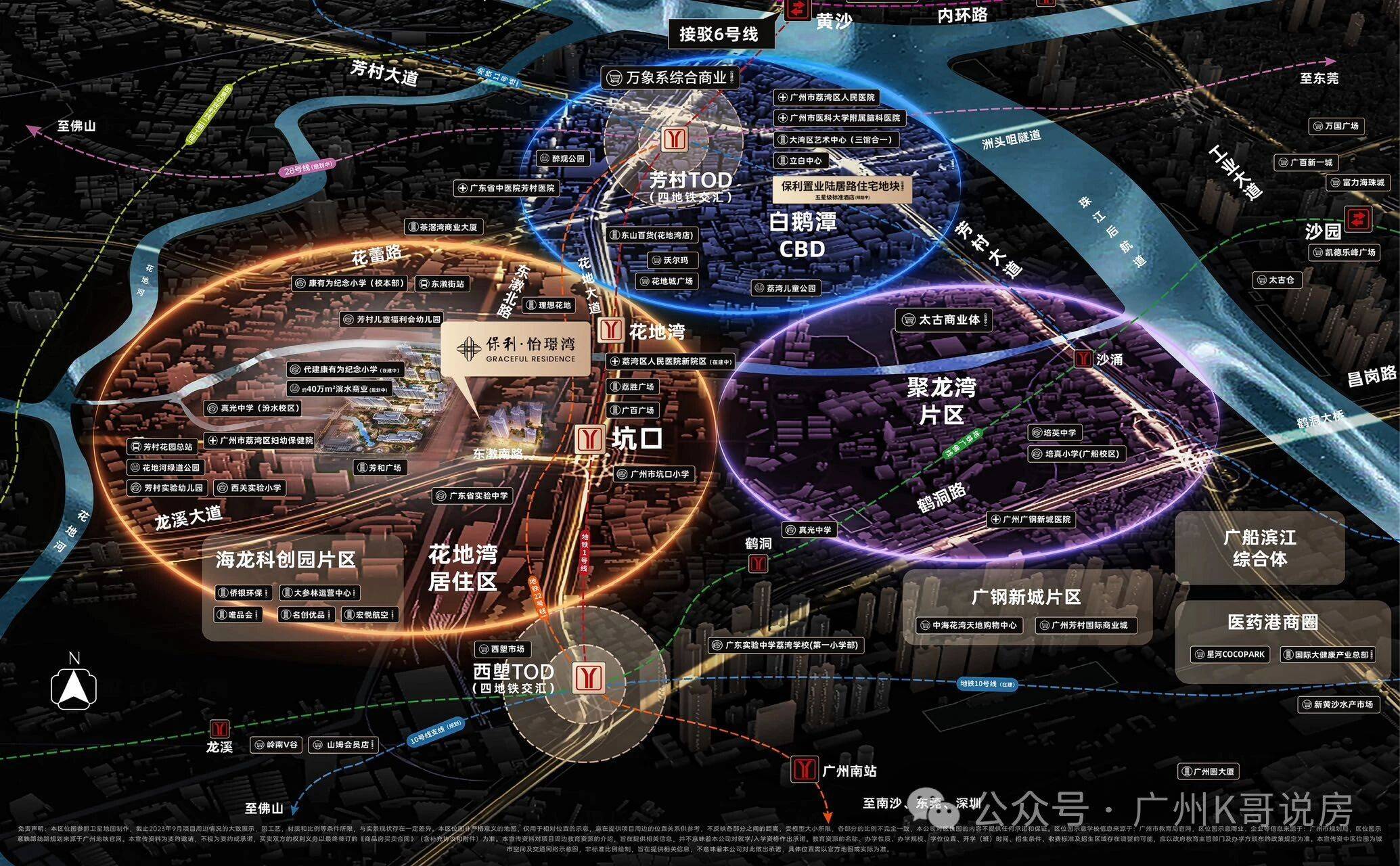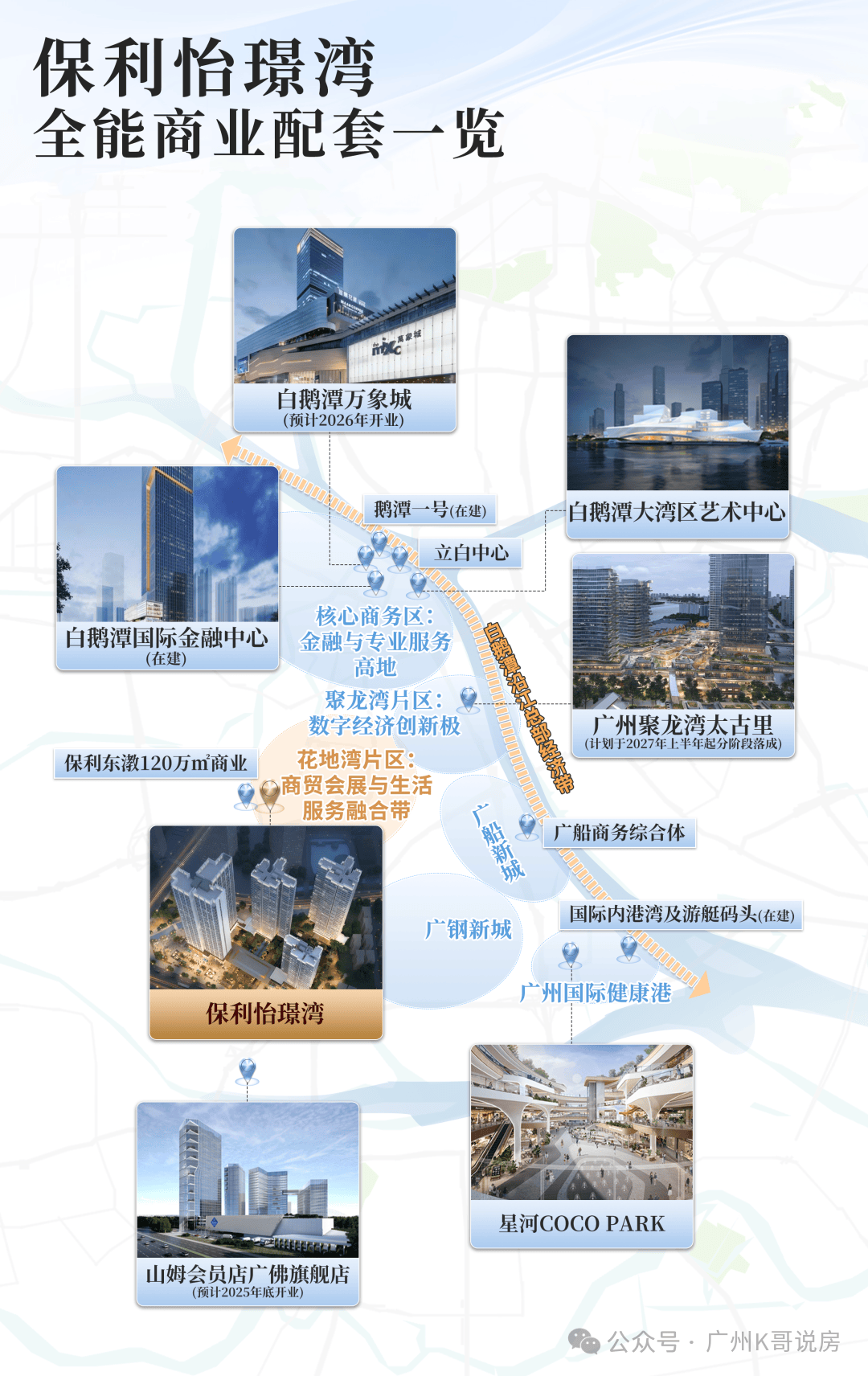 6. 商业配套:全维商业配套环绕,自身规划约40万㎡滨水商业街区,周边有万科理想花地商业、芳和荟、荔胜广百等商圈,日常便民配套成熟,兼顾日常刚需与高端消费,实现“出则繁华、入则宁静”的理想居住体验。