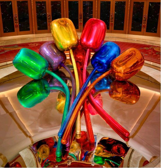 其中穿越古今的艺术之旅,主打展示总金额高达2亿美金的众多名贵艺术品,包括大型钢铁雕塑《郁金香》、稀世中国清朝陶瓷花瓶—巴克勒公爵花瓶,以及不锈钢系列作品,如灰姑娘的高跟鞋等,让宾客感觉如同身处精品艺术廊。