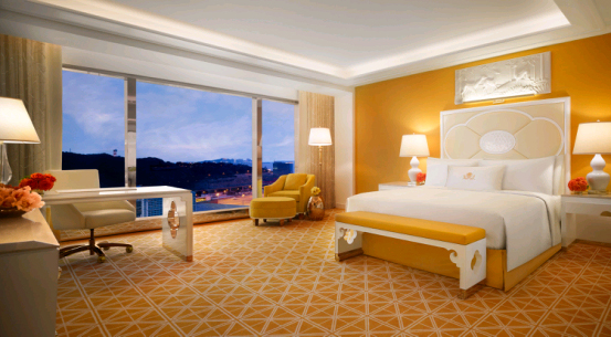 永利皇宫还有一个占地4497平方米的水疗中心,拥有22间理疗室,并提供面部护理、全身按摩等30款疗程。酒店还提供室外游泳池、按摩池、六间池畔小屋,以及占地约45987平方米的娱乐场。 1706间酒店客房是以黄色、橙色、绿色和焦糖色为主要基本色调,面积从68平方米至362平方米不等,都设有特大落地玻璃窗。其中套房不分主客卧,都以主卧为设计,并都有独家舒适枕头系列选单可供宾客选择。每间独立的套房还设有私人休憩间、按摩浴池及水疗空间。而表演湖景尊贵套房更提供客厅、饭厅、娱乐厅、衣帽间、化妆室,以及24小时私人管家服务。所有房间均配备永利独有的舒适睡床及寝具、Molton Brown为永利皇宫特配的沐浴用品、Bang & Olufsen蓝芽音响系统、互动触控式控制面板,以及免费宽带上网服务。