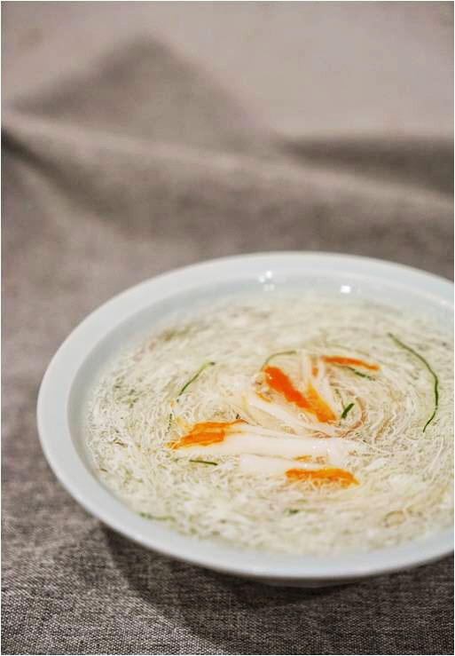 一般人对于淮扬菜的印象便是刀工,而厨师刀工的精湛,在文思豆腐羹配芝麻烧饼中显露无遗,豆腐羹中加入瑶柱提鲜,配上面点师傅陈萍在当地现做的酥脆烧饼更是一绝。扬州炒饭的配料中则用到了西班牙火腿,进行风味改良。