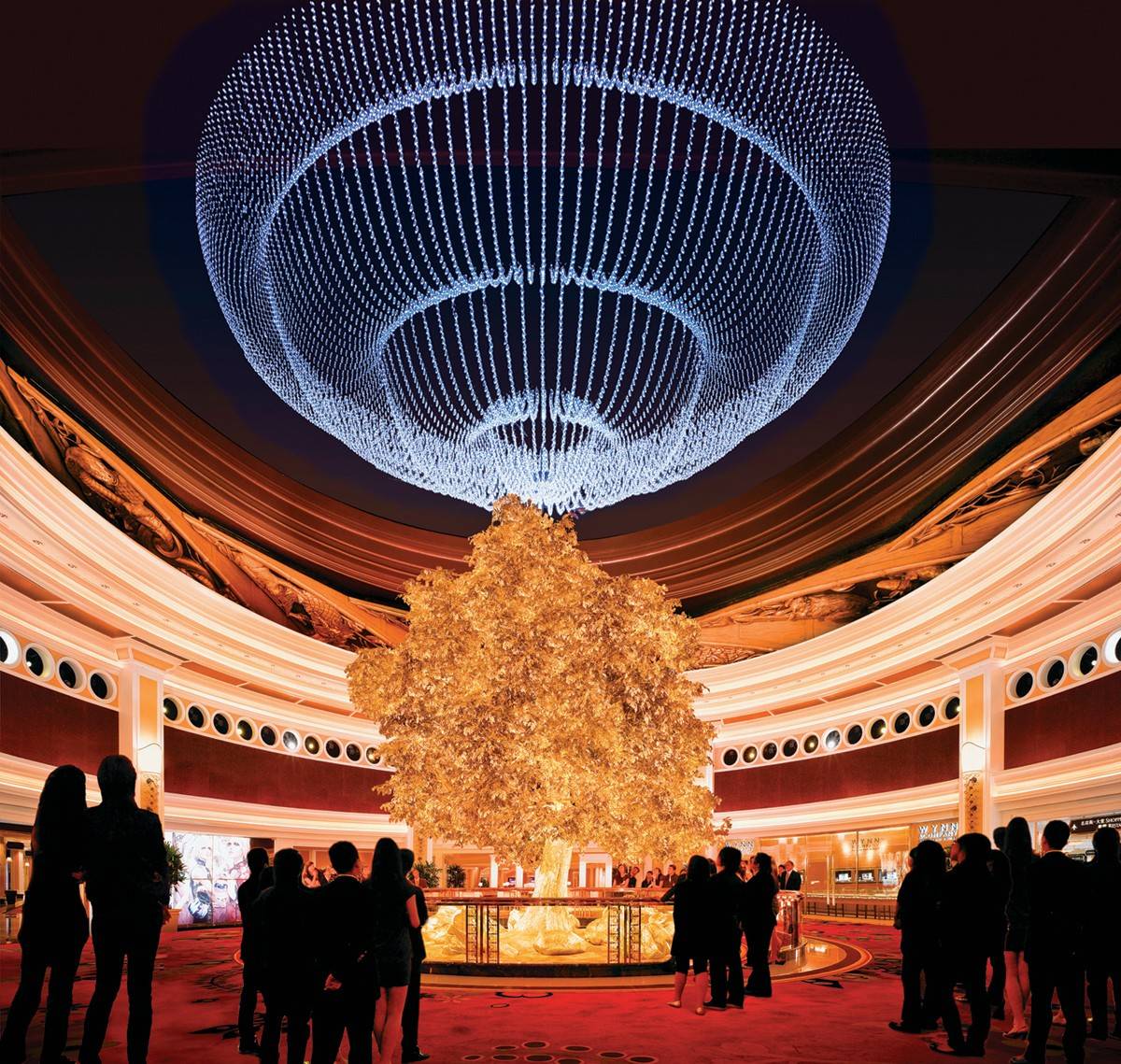 在永利澳门,其标志性的景观——“吉祥树”是来澳门旅游的必打卡地之一。这棵位于酒店中庭、由24K纯金及黄铜打造的吉祥树高达11米,由98,000块叶子组成,在每日多场声光表演中缓缓升起,变换四季色彩,寓意财富与好运,是备受游客喜爱的免费打卡项目。